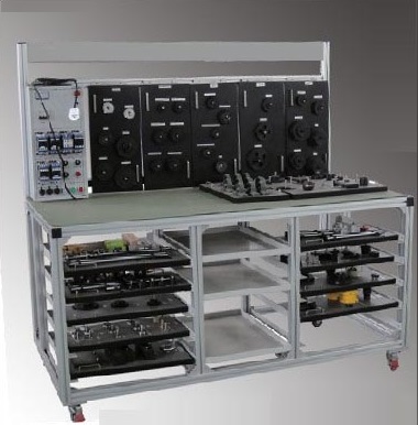 本裝置由通用工作臺及面板支架、由工業(yè)鋁型材組成的使用T型槽螺母進行安裝的安裝件以及各實訓模塊組成,各實訓模塊不用時可存放到通用工作臺中,使用時取出進行裝配調整,使用方便,配置靈活,能滿足不同階段學生教學實訓任務的需要。